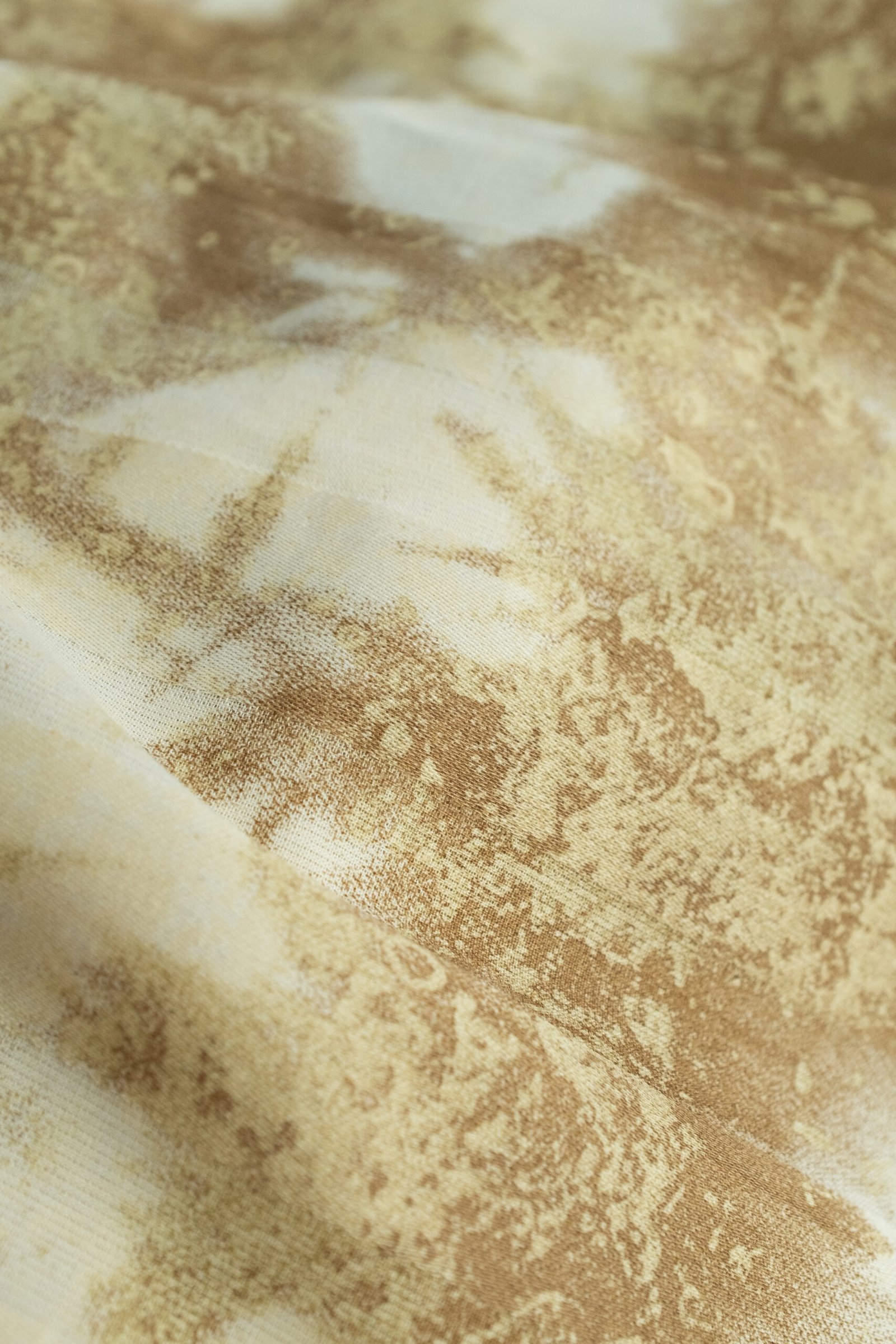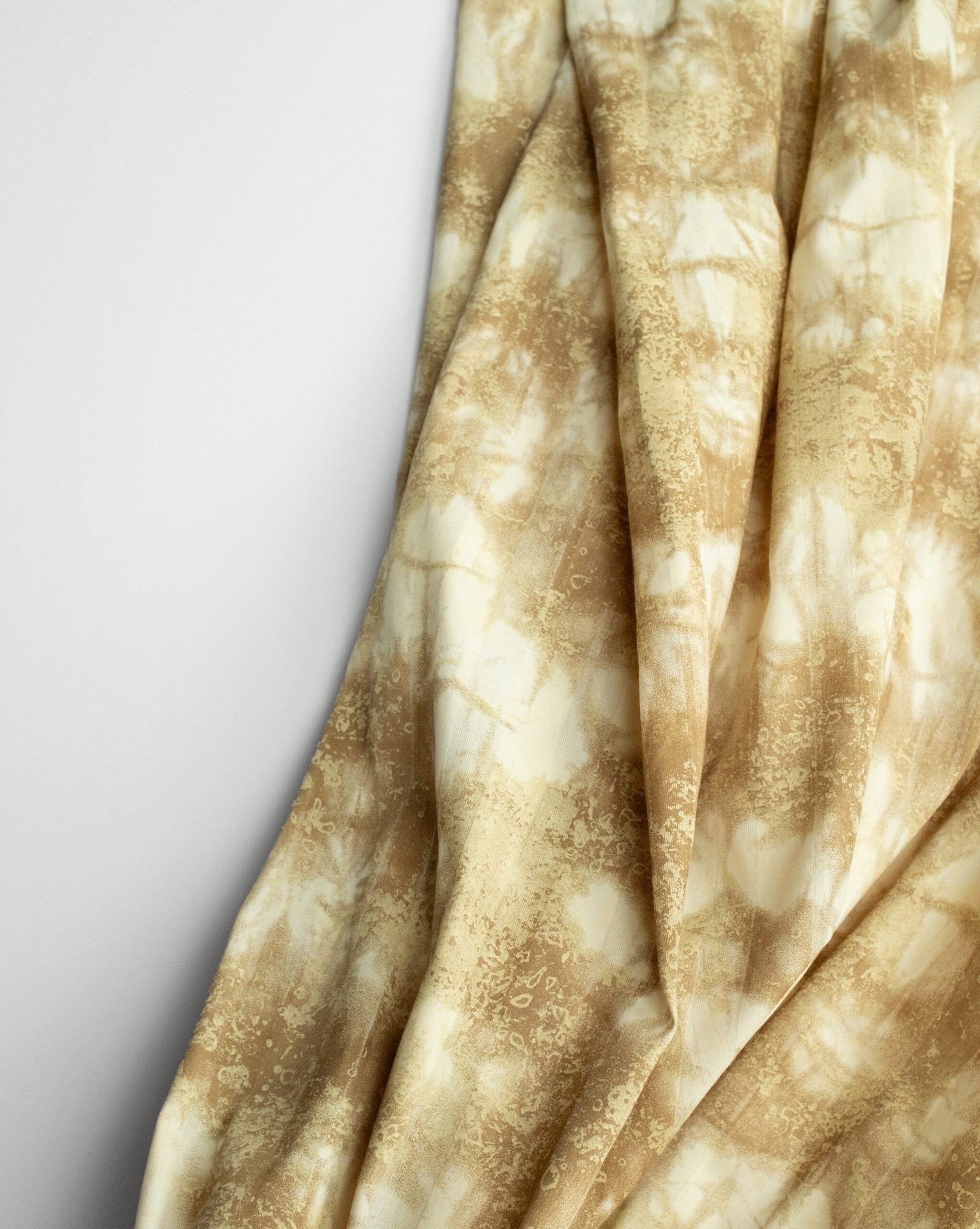Unikalaus rašto ir spalvų austinis audinys. Audinys standus, puikiai tiks siūti laisvalaikio ar proginius drabužiams, kurių dizaino tikslas išryškinti figūrą, išgauti griežtesnę formą, nes audinys vidutinio standumo.