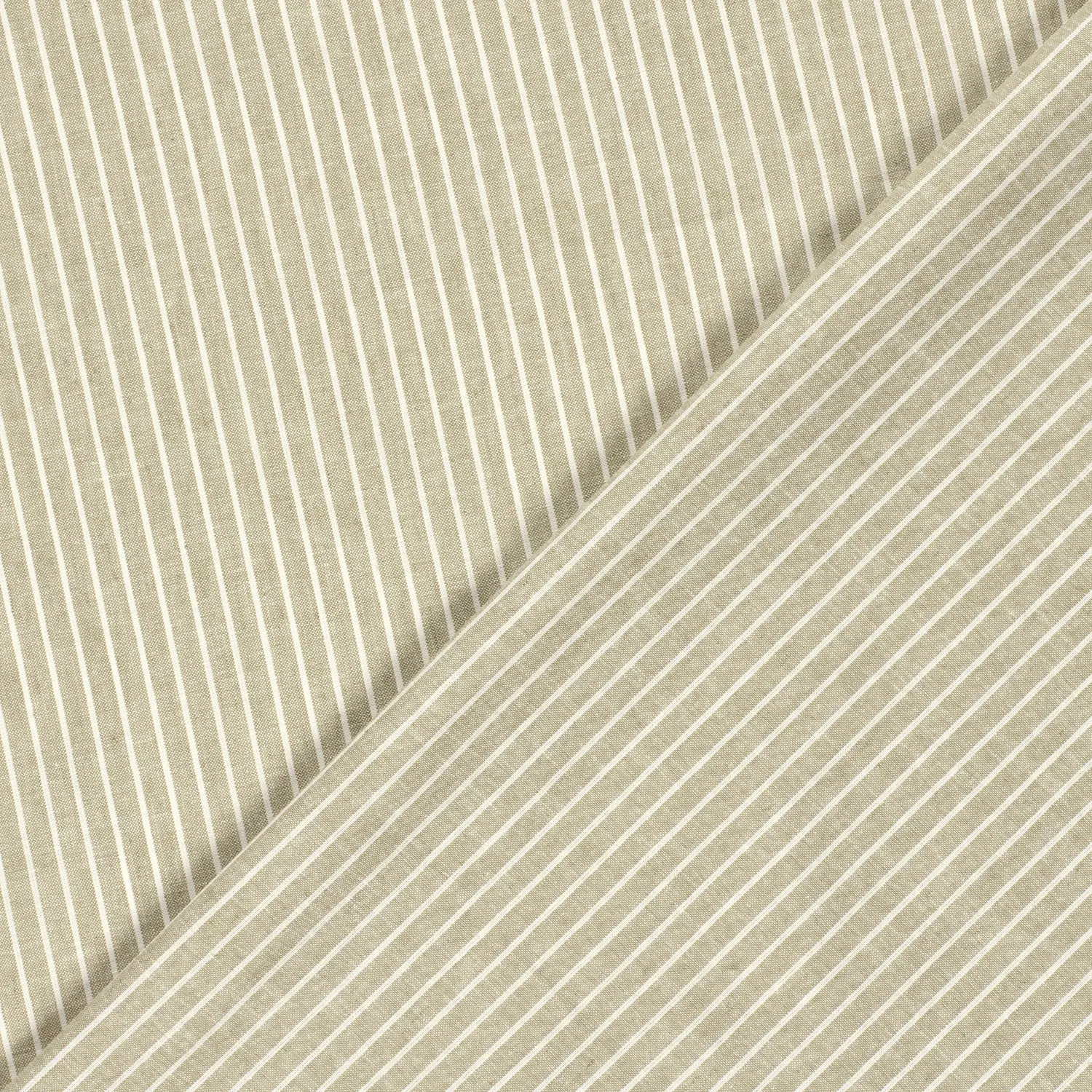 Alyvuogių žalios spalvos audinys su chambré, smulkiomis juostelėmis. Audinys matinis, minkštas ir malonus liesti, lengvai krentantis, nepersimato. Puikiai tiks siuvant laisvalaikio ir proginius drabužius, taip pat interjero detales – užuolaidas, staltieses ir kita.